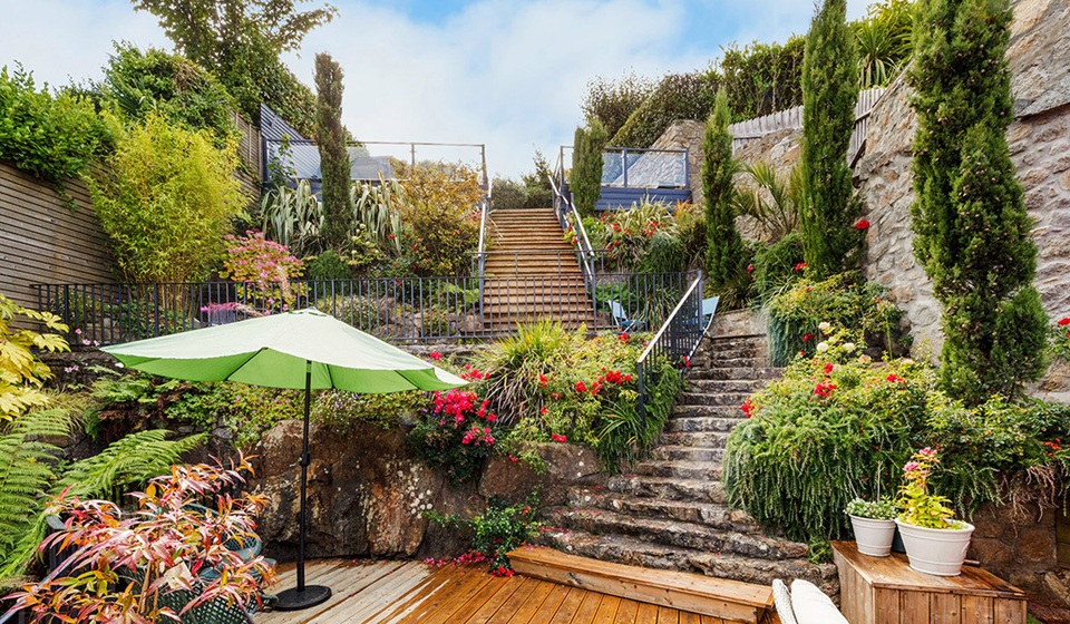 The three-bedroom, four-bathroom property is just a block from the bouji suburb’s cafes, restaurants and bars but is far removed from the action.