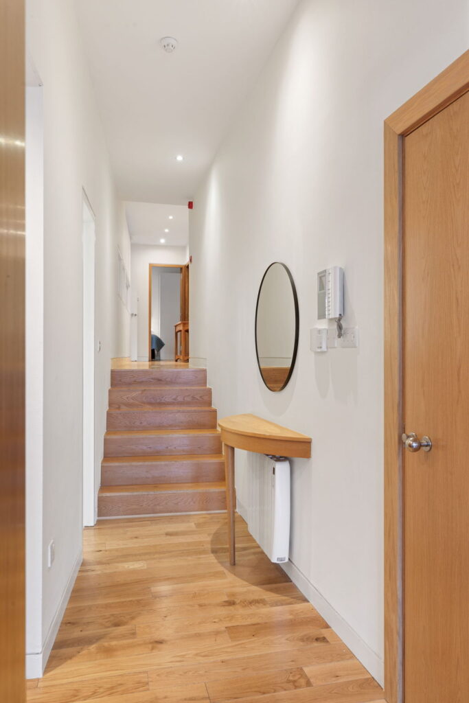Both bedrooms are to the rear and are en-suites, and the bathrooms have heated stone floors