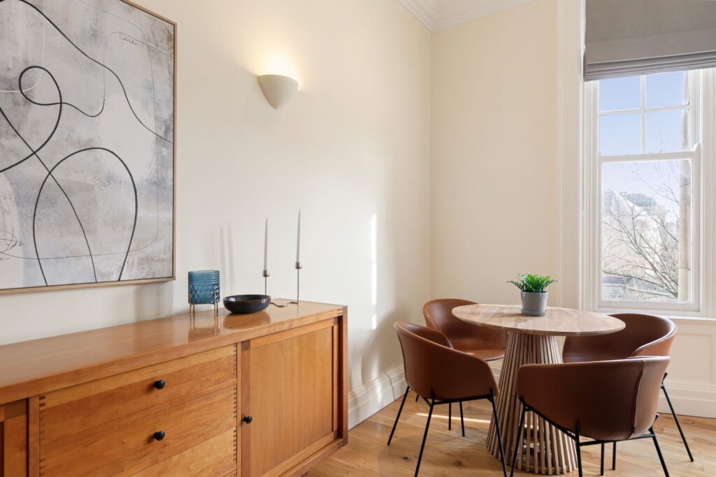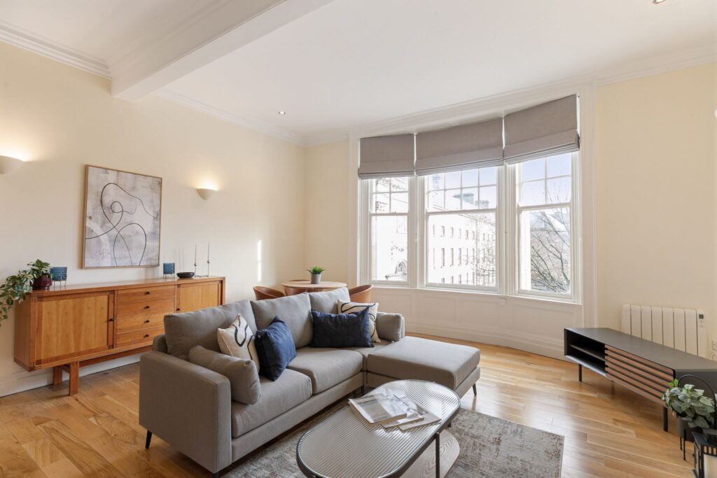 Overlooking Trinity College and set on the second floor of an Edwardian building at the bottom of Grafton Street, this apartment is smartly laid out to make the most of its location.