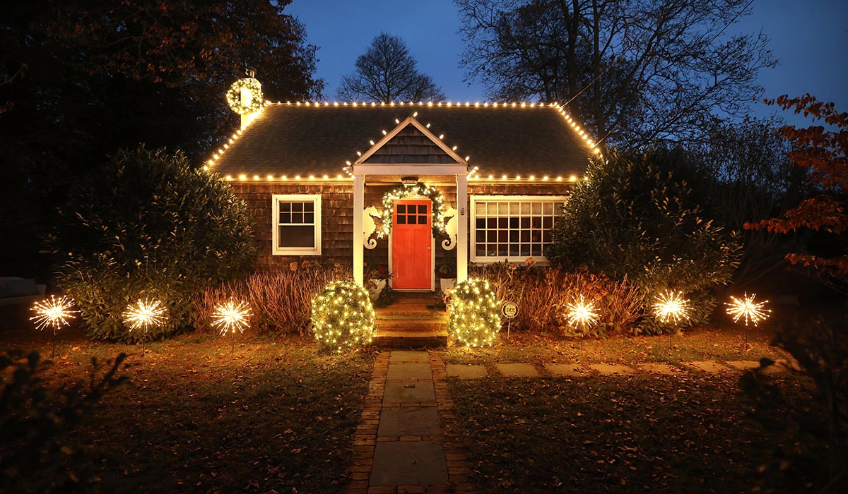 The timber sash windows have twelve-over-one panes.