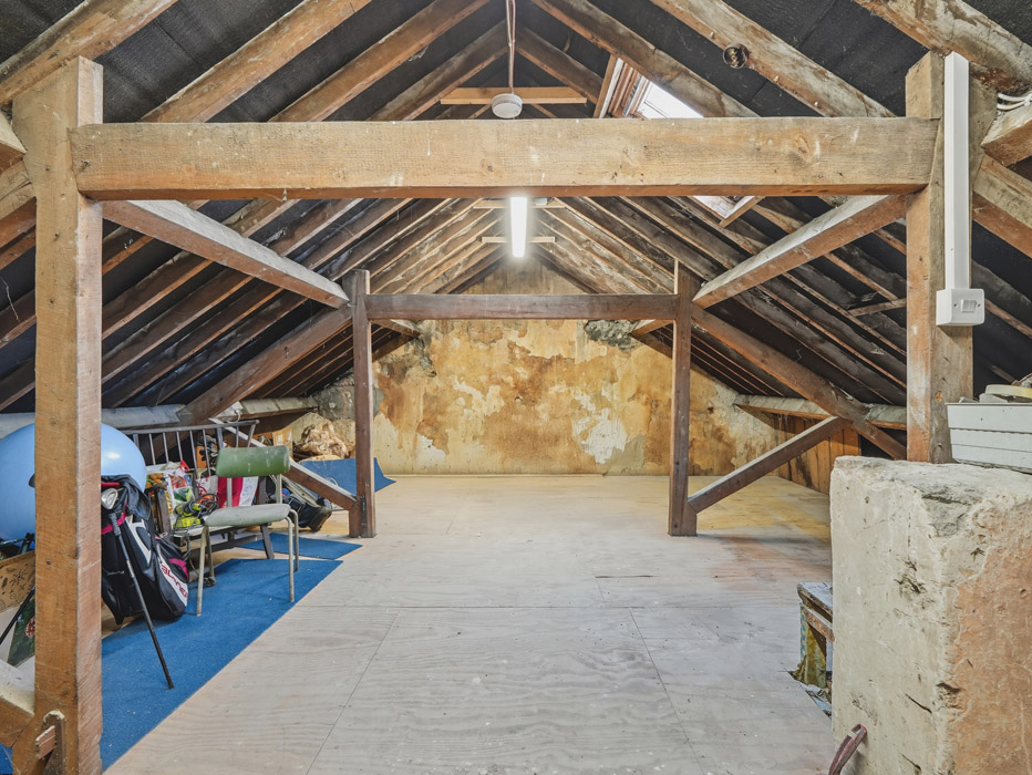 Its real talking point is the two-bay living room at first floor level. It spans the width of the house and is washed in light and feels private.