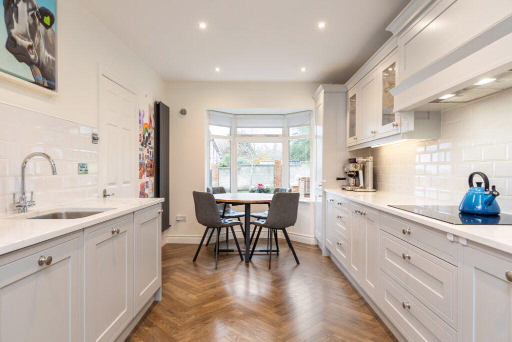 The kitchen is to the front with its breakfast table in the bow window, a view that isn't overlooked.