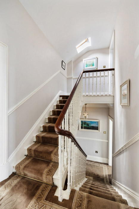 The rest of the ground floor is set to the rear of the stairs and includes a formal dining room and adjacent sitting room, both of which lead through to the large, eat-in kitchen.
