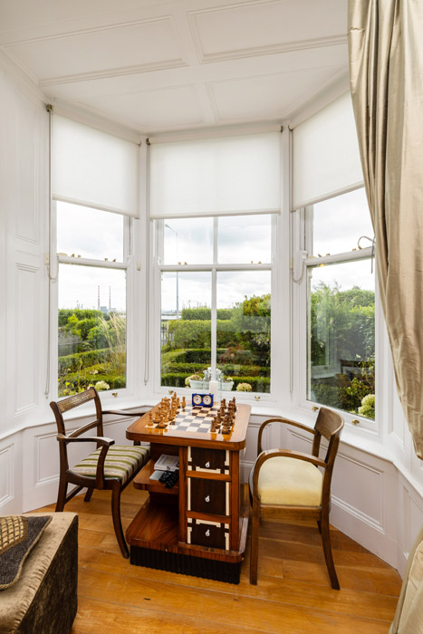 There’s a formal living room to the front with a seated area within its bay window – a place to soak up the light on inclement days.