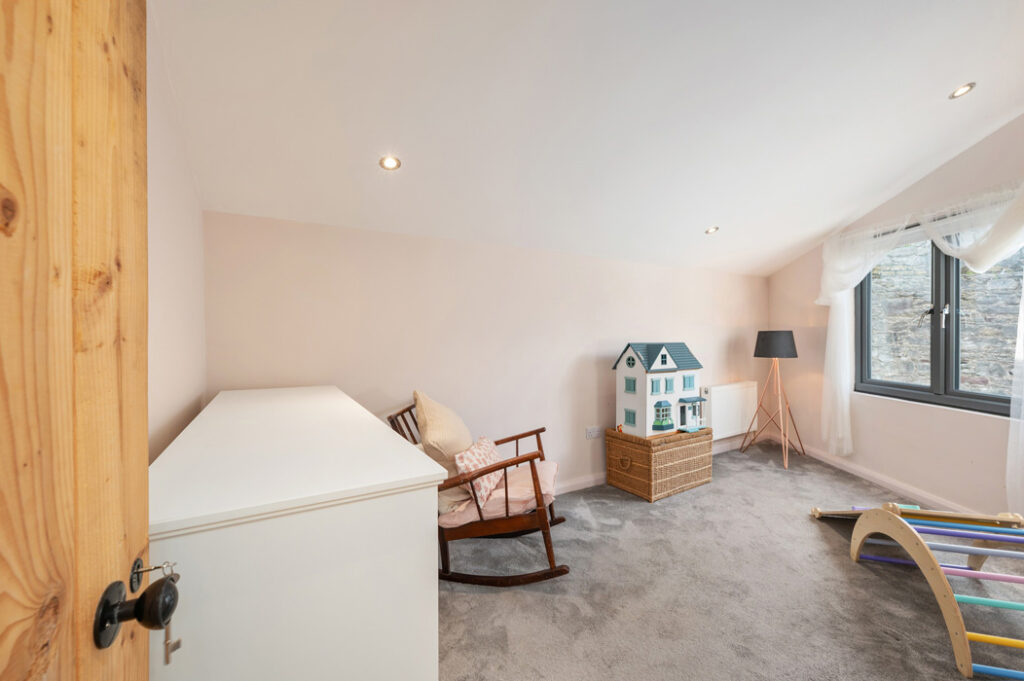 The second bedroom is currently used as a nursery. There is also a shower room at this level.