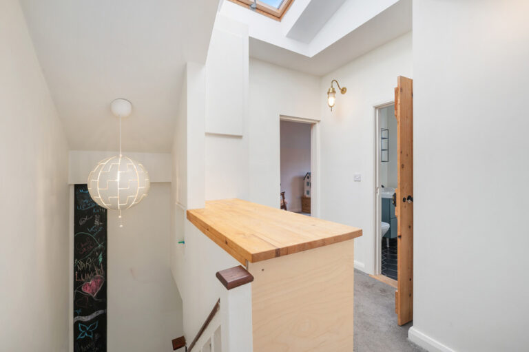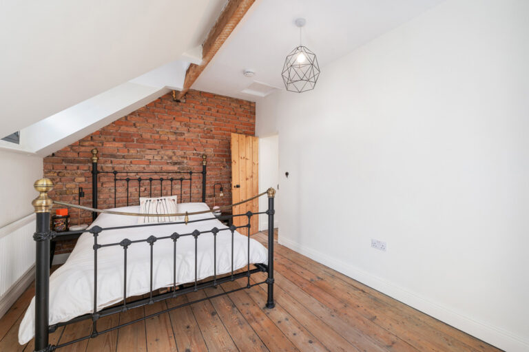 The red brick on its chimney breast has been exposed, and there is a second light source from the dormer window to the front.