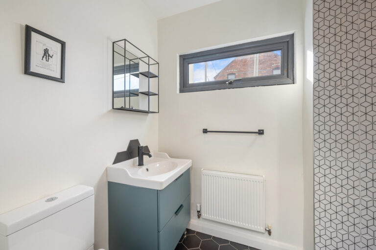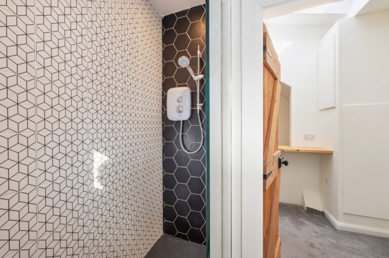 The second bedroom is currently used as a nursery. There is also a shower room at this level.