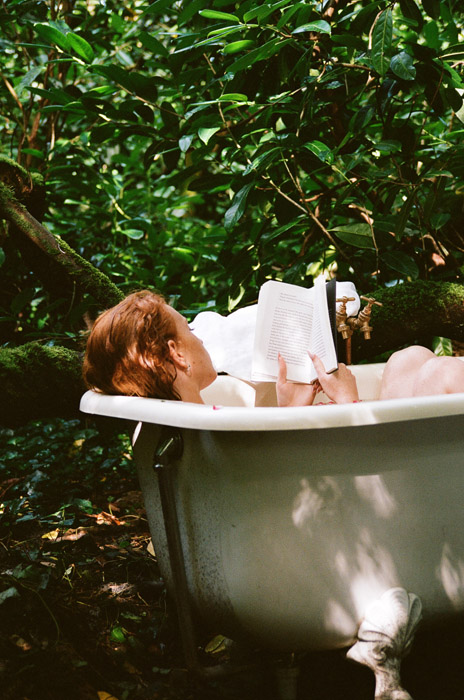 It offers an outdoor copper bath, heated by gas in an instant.