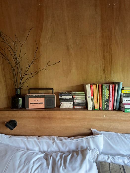 There are books to read, games to play and even a cassette player to fool around with. There are lockboxes you can put your tech into.