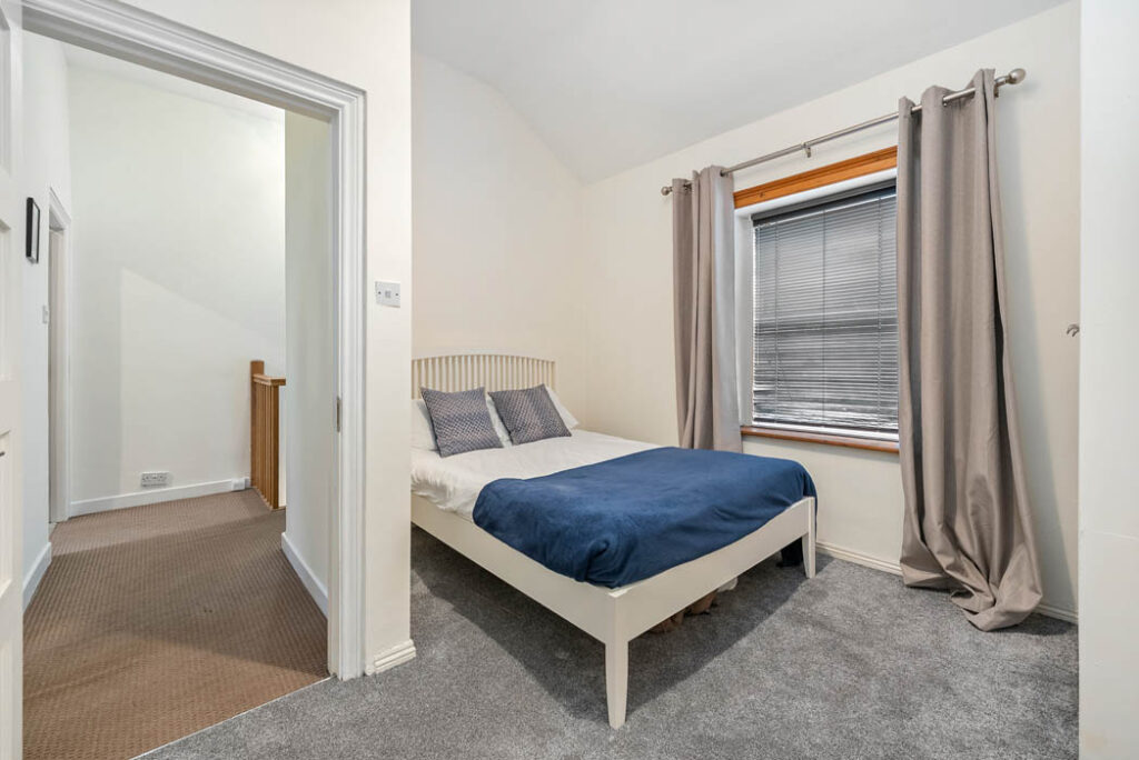 Upstairs, there are three bedrooms, all with pitched ceiling heights of over 3.6 metres.