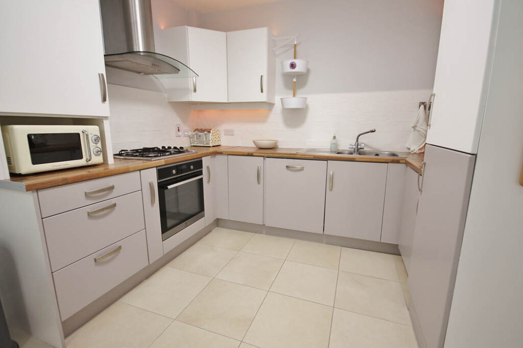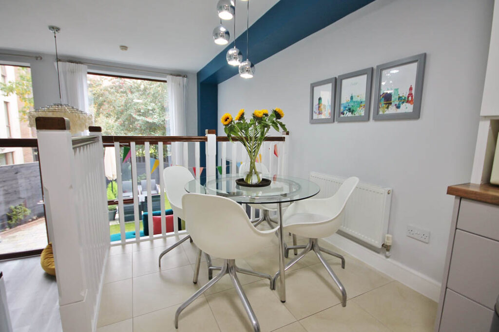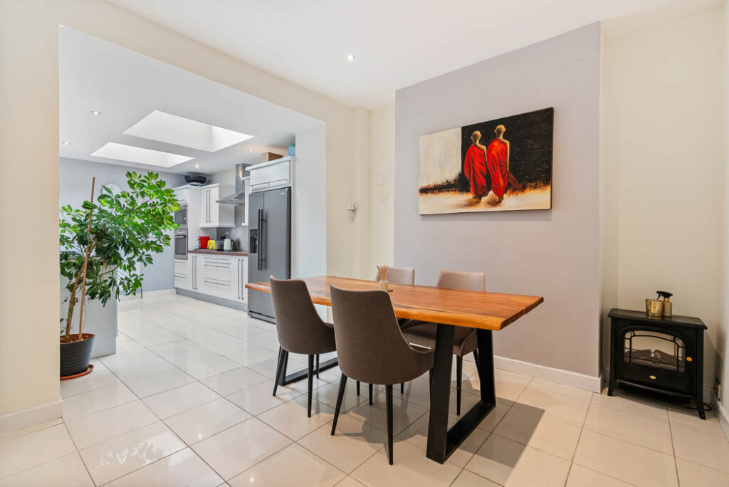 The house, which extends to over 95 square metres, boasts a separate living room and kitchen-diner.