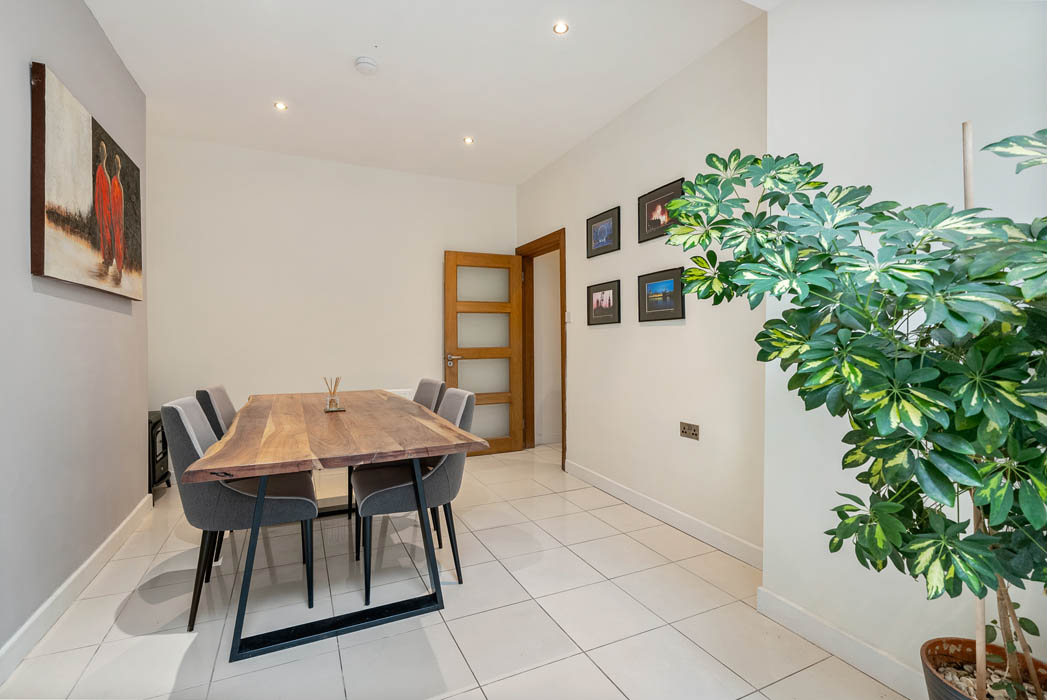 The eat-in kitchen is set above it and benefits from the same natural light source.