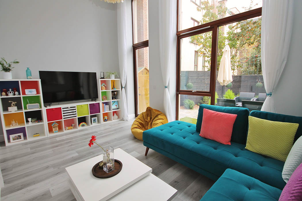 From the sunshine yellow of its front door and across its multiple levels, this is a light-filled, nicely appointed B2 Ber-rated two-bedroom, three-bathroom, duplex.