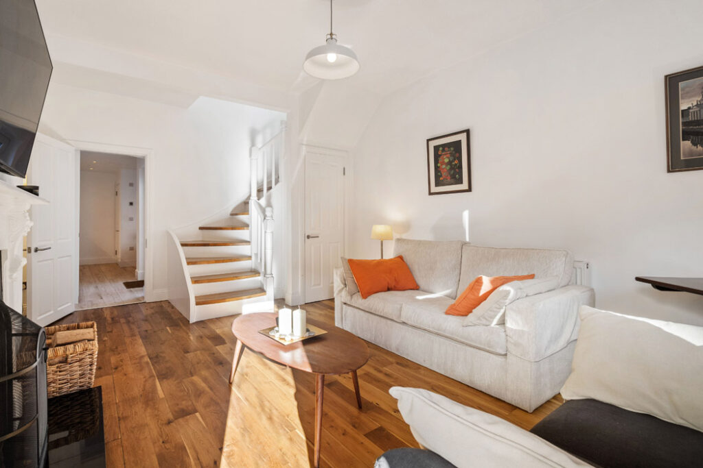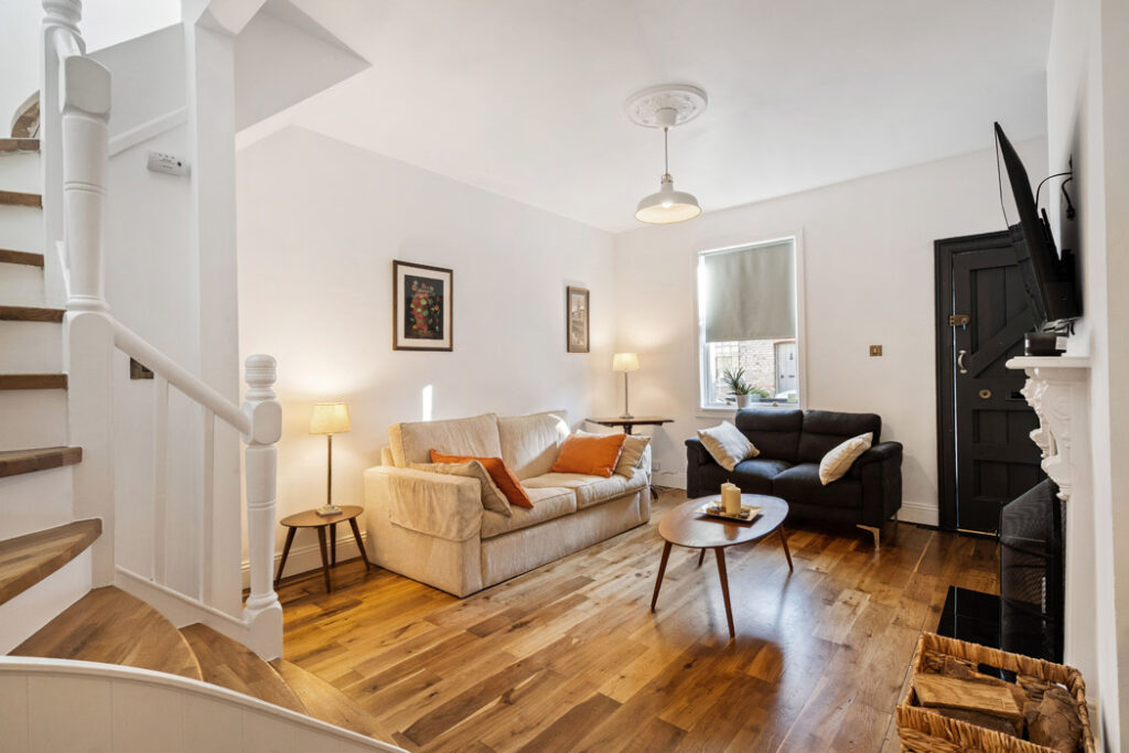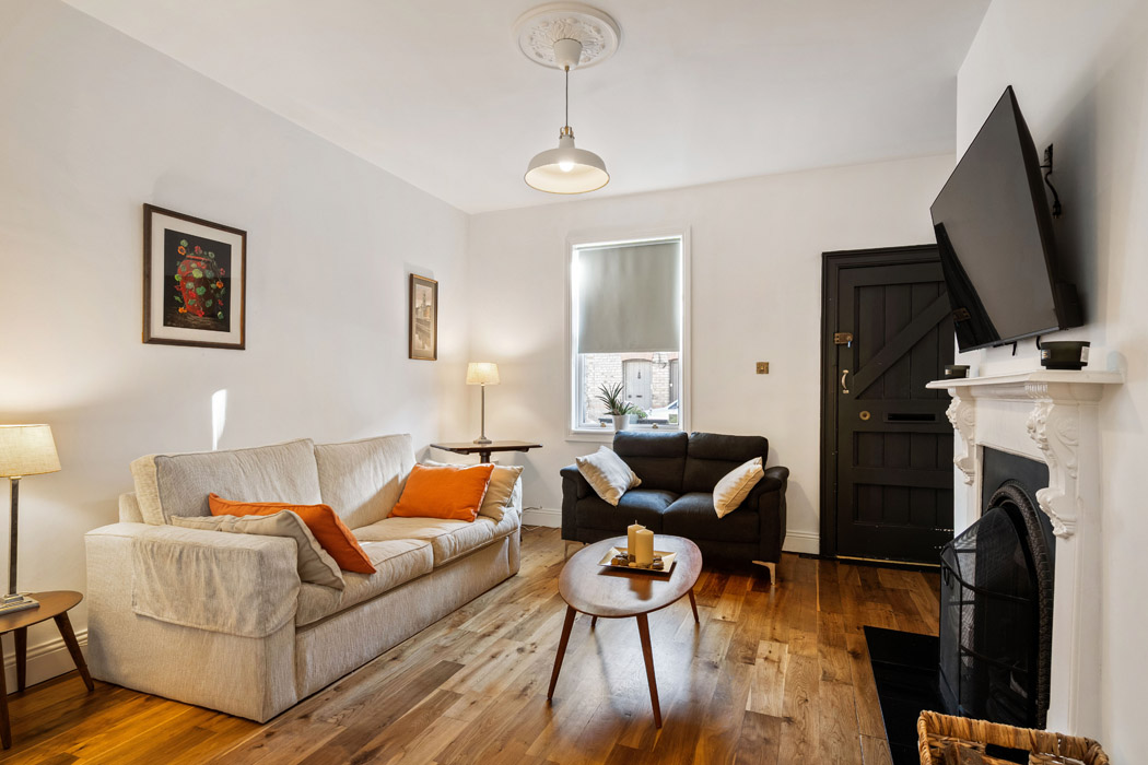 This two-up, two-down brick-fronted terrace house is a quiet cul-de-sac just off Blackpitts.