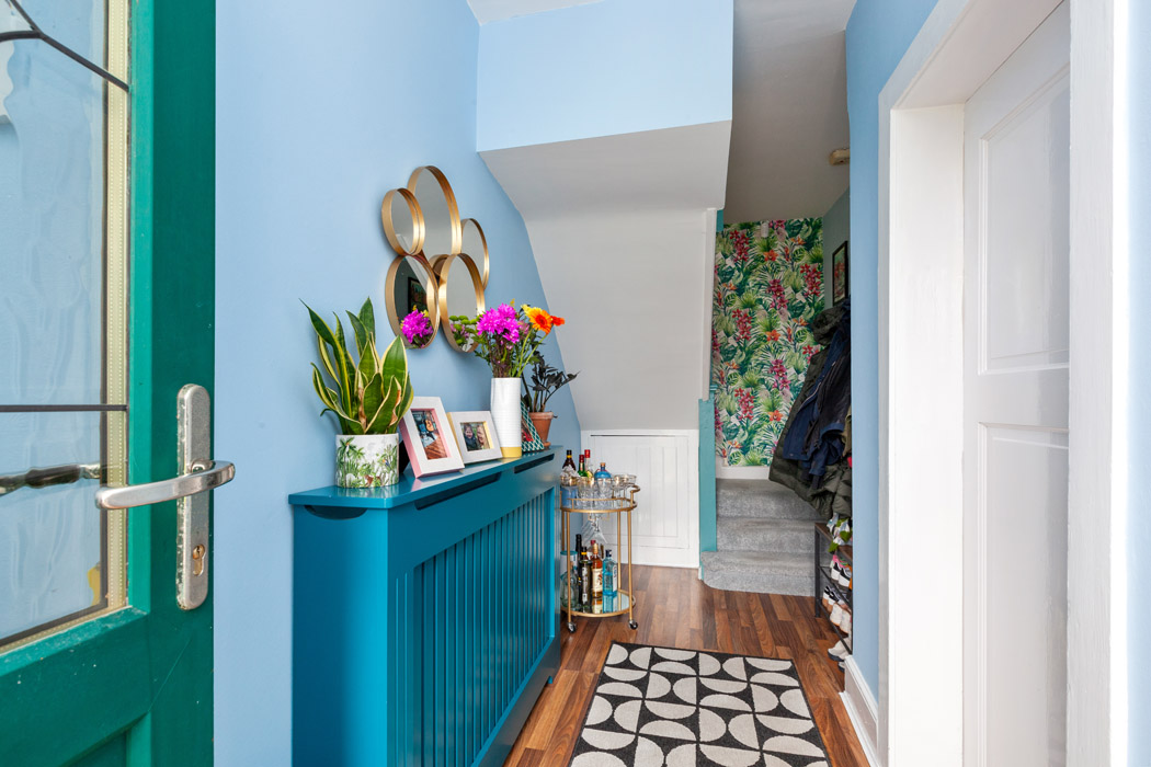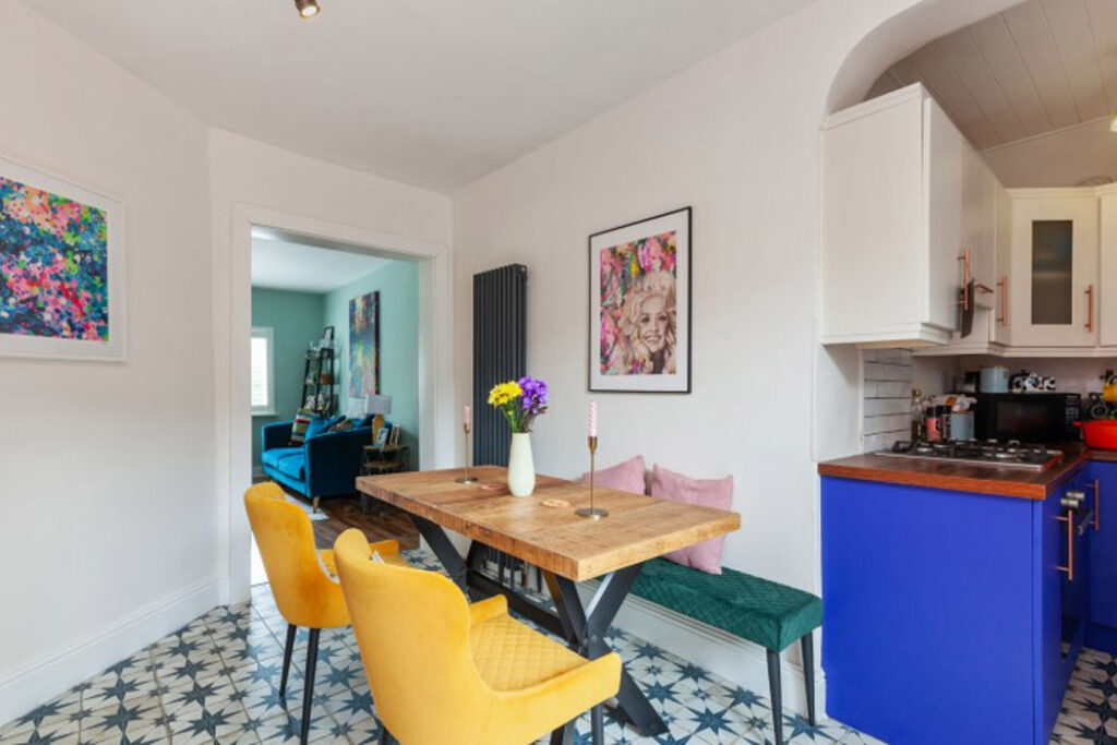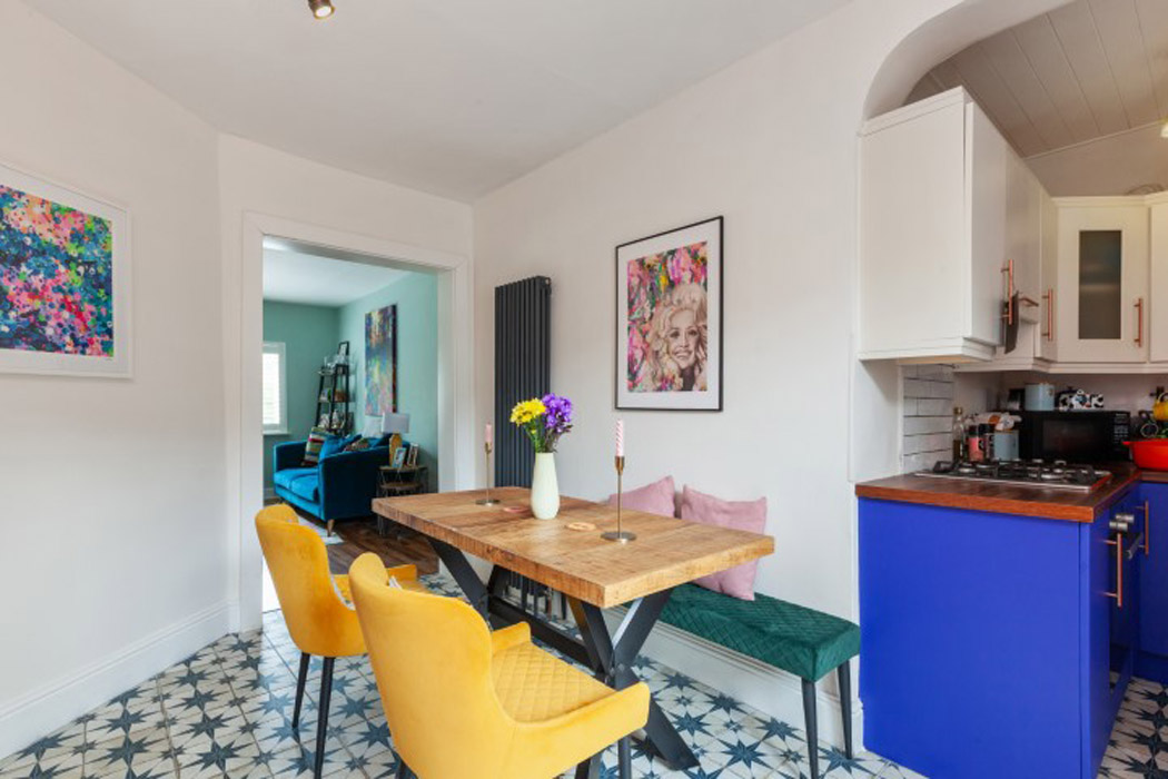 Measuring 85 square metres, it has been painted in jewel tones and has an interconnecting ground floor.