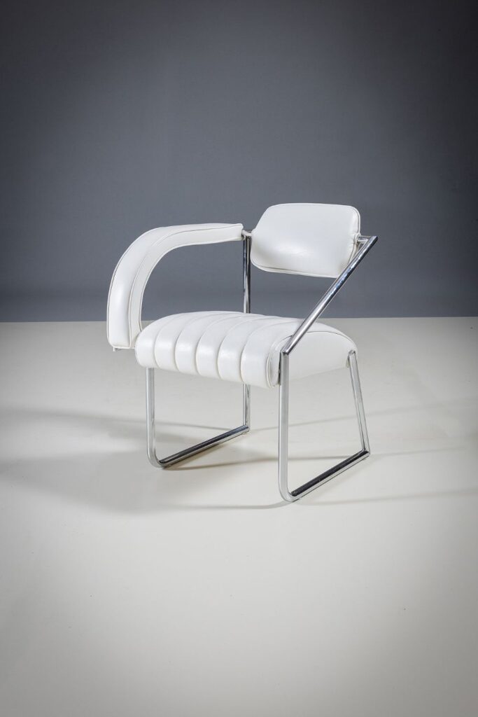 Lots 67 and 68 feature examples of the non-conformist chair, in white and black leather, respectively.