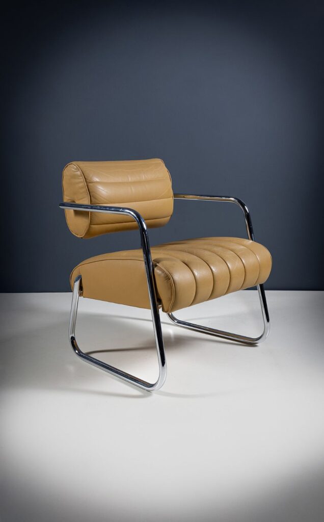 Inspired by the deckchairs used on transatlantic ocean liners, Le Fauteuil Transatlantique, abbreviated to Transat, features a sling seat and a pivoting head section, and is guiding between €4,000 and €6,000.