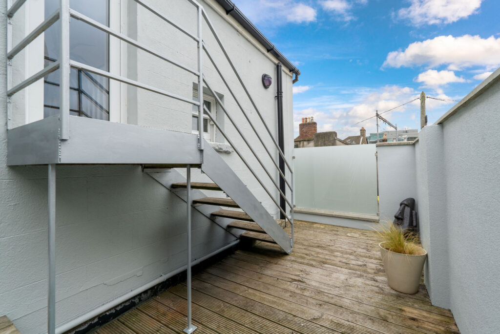 A set of stairs takes you up half a flight and down about the same number of steps out to a very private, west-facing roof terrace.