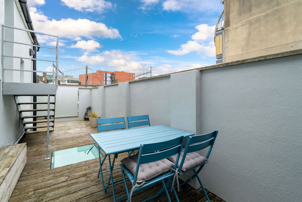 A set of stairs takes you up half a flight and down about the same number of steps out to a very private, west-facing roof terrace.
