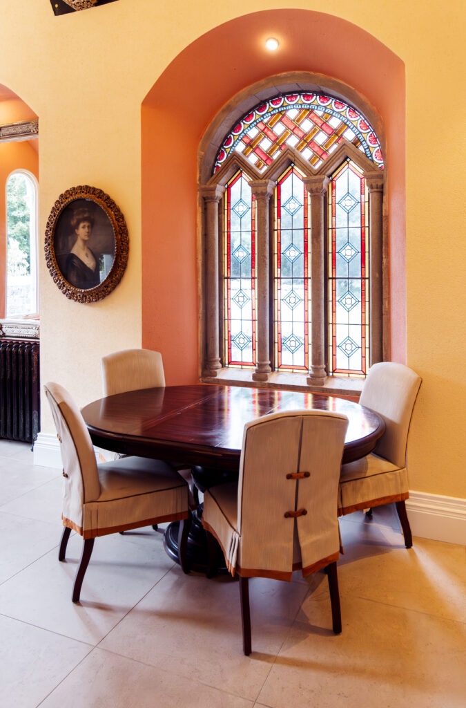 There is a dining area that is framed by a feature leaded glass window, a talking point should there be a lull in the conversation.