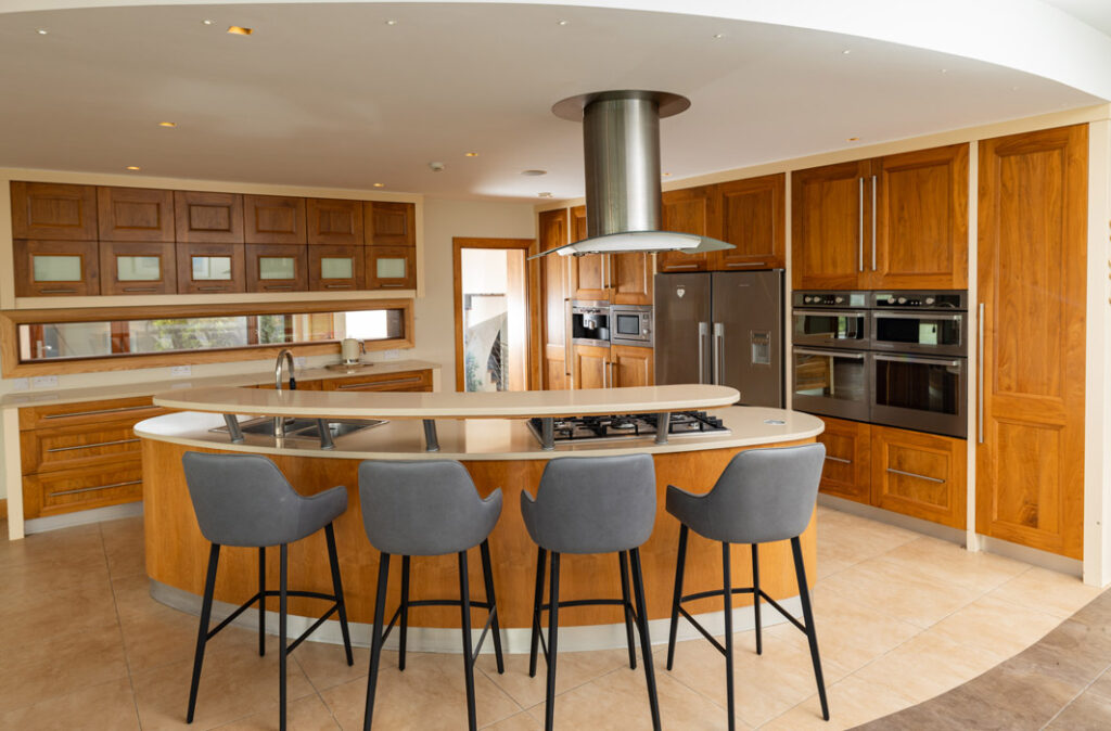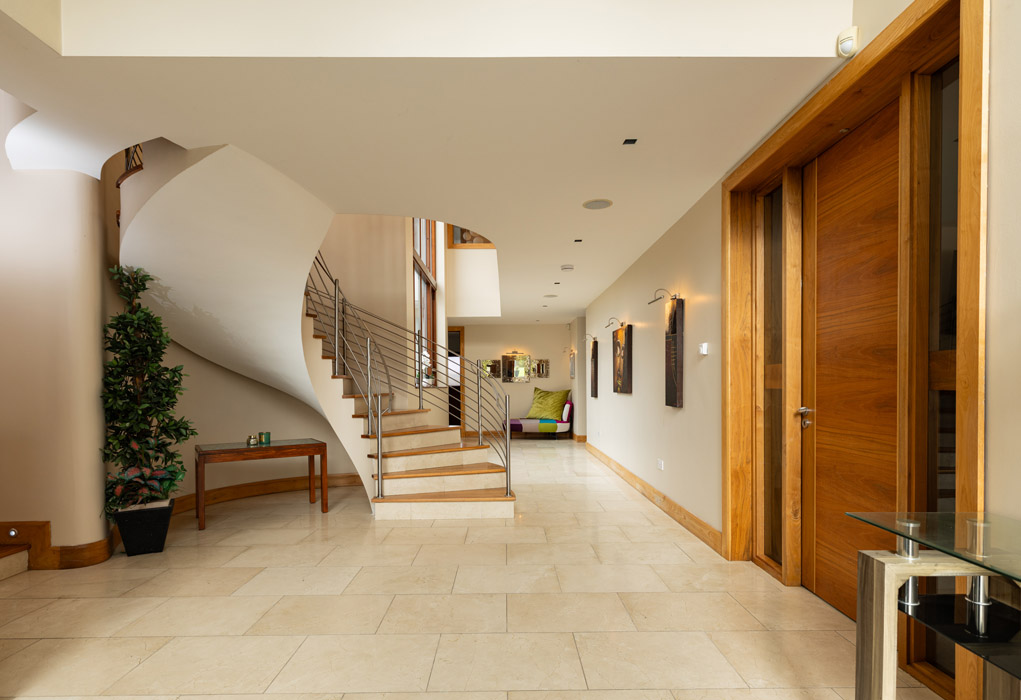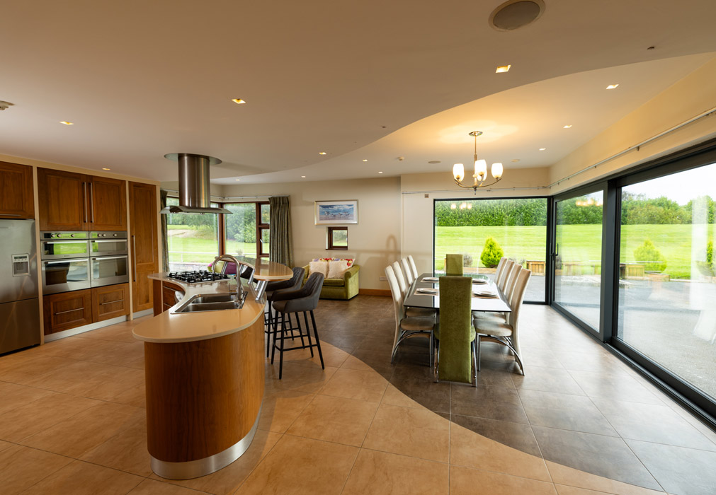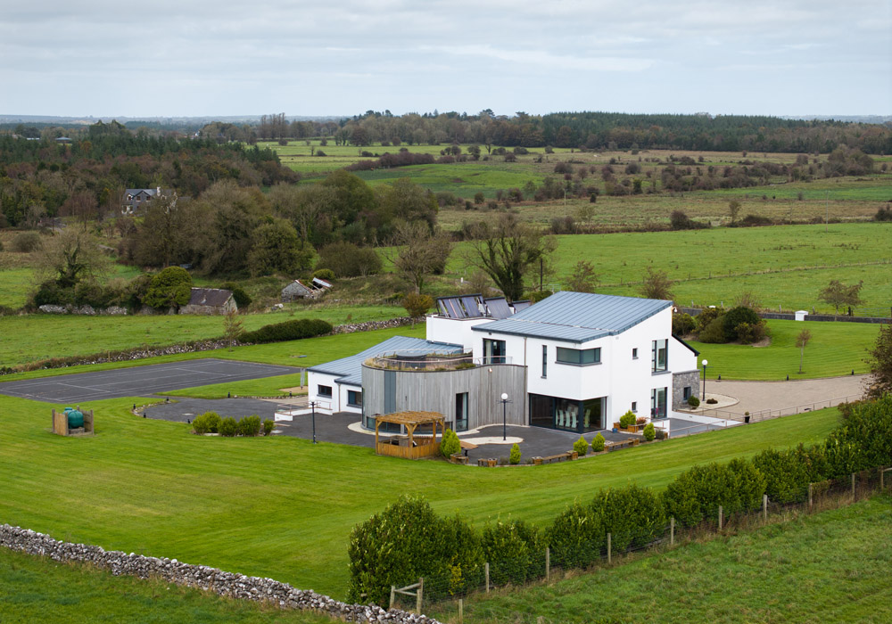Framed on several sides by Carrabane Forest, this B2 Ber-rated house is gargantuan in size. Extending to 574 square metres and set over two floors, the B2 Ber-rated residence includes a huge eat-in kitchen with curves.