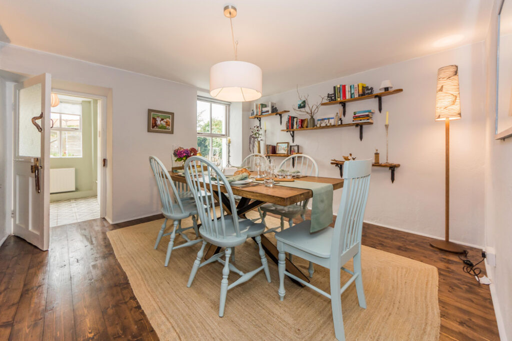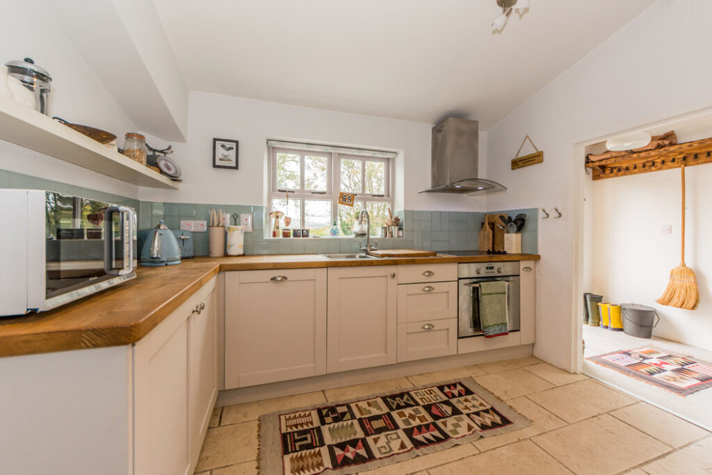 Sheltered from the elements by wooded areas, the property extends to about five acres of land, plenty of space to keep some livestock and grow-your-own produce.
