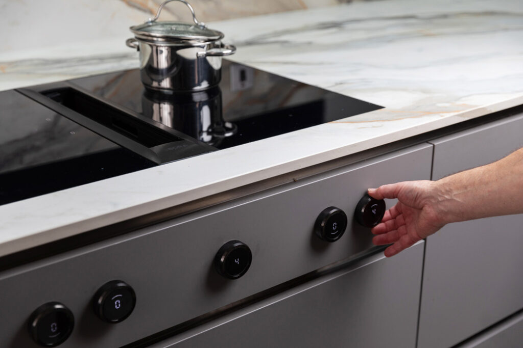 Dedicated to cooking, the second half of the island features a Bora professional induction hob that comes with reactive knobs to control temperatures as fast as a chef would.