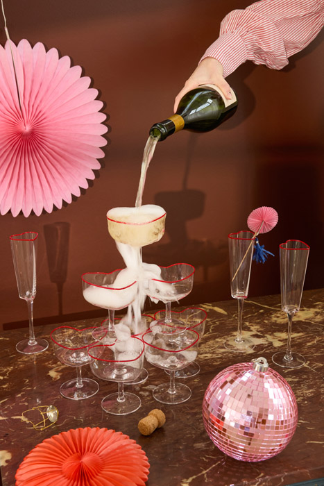 The Drigrip champagne flutes, shown in the lead image, will elevate the party atmosphere no matter what kind of bubbles you serve. They cost €2.50 each from Ikea.