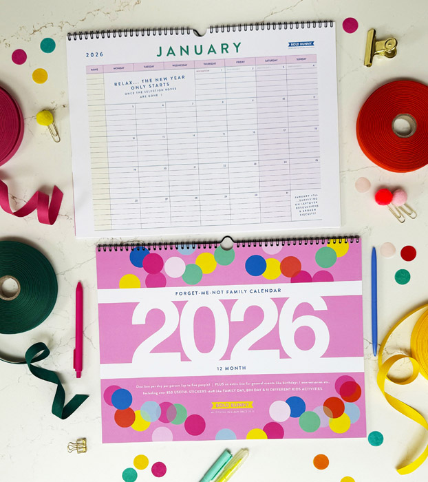Set up by Warren Keeper and Ali Jones, Irish stationery design house Bold Bunny’s Forget Me Not calendar comes with stickers for all the activities your household engages with, be it dog walking, gym time, or family birthdays and get-togethers, all is here in one place for every member of the family to consult.