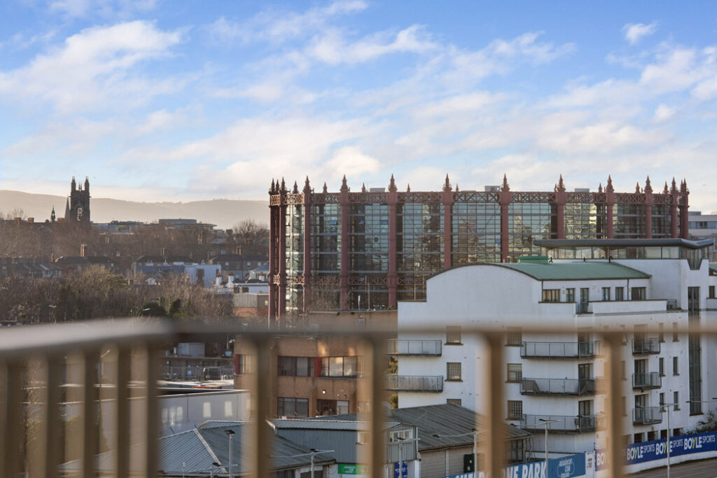 From here, there are multiple access points out to the wraparound balcony where you can watch the greyhound racing at Shelbourne Park, across the water and hear the roars from the Aviva Stadium during the Heineken Cup season and the summer gigs.
