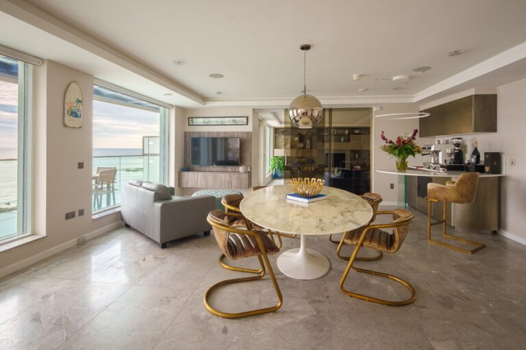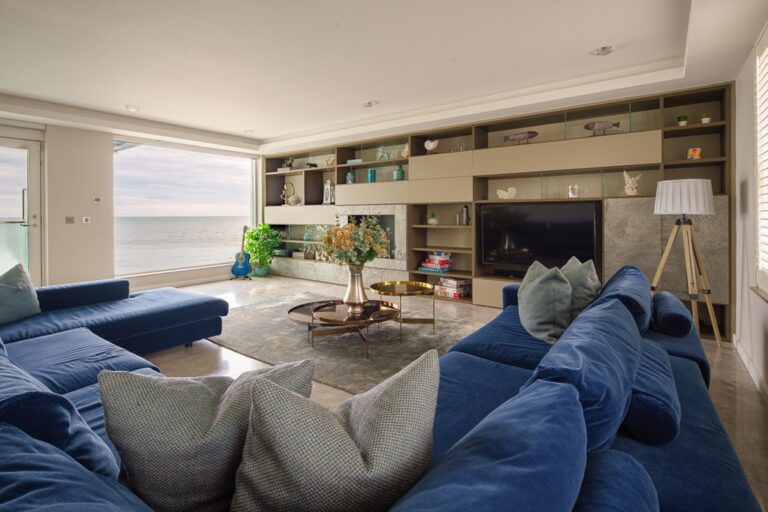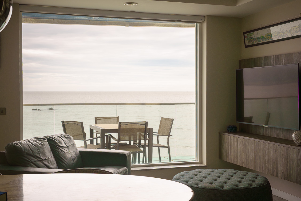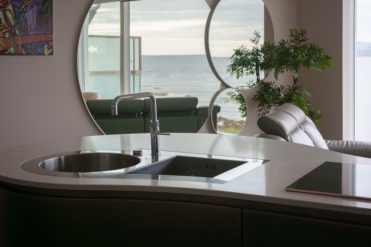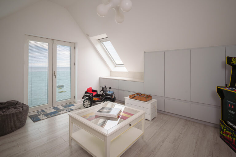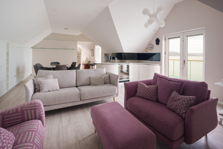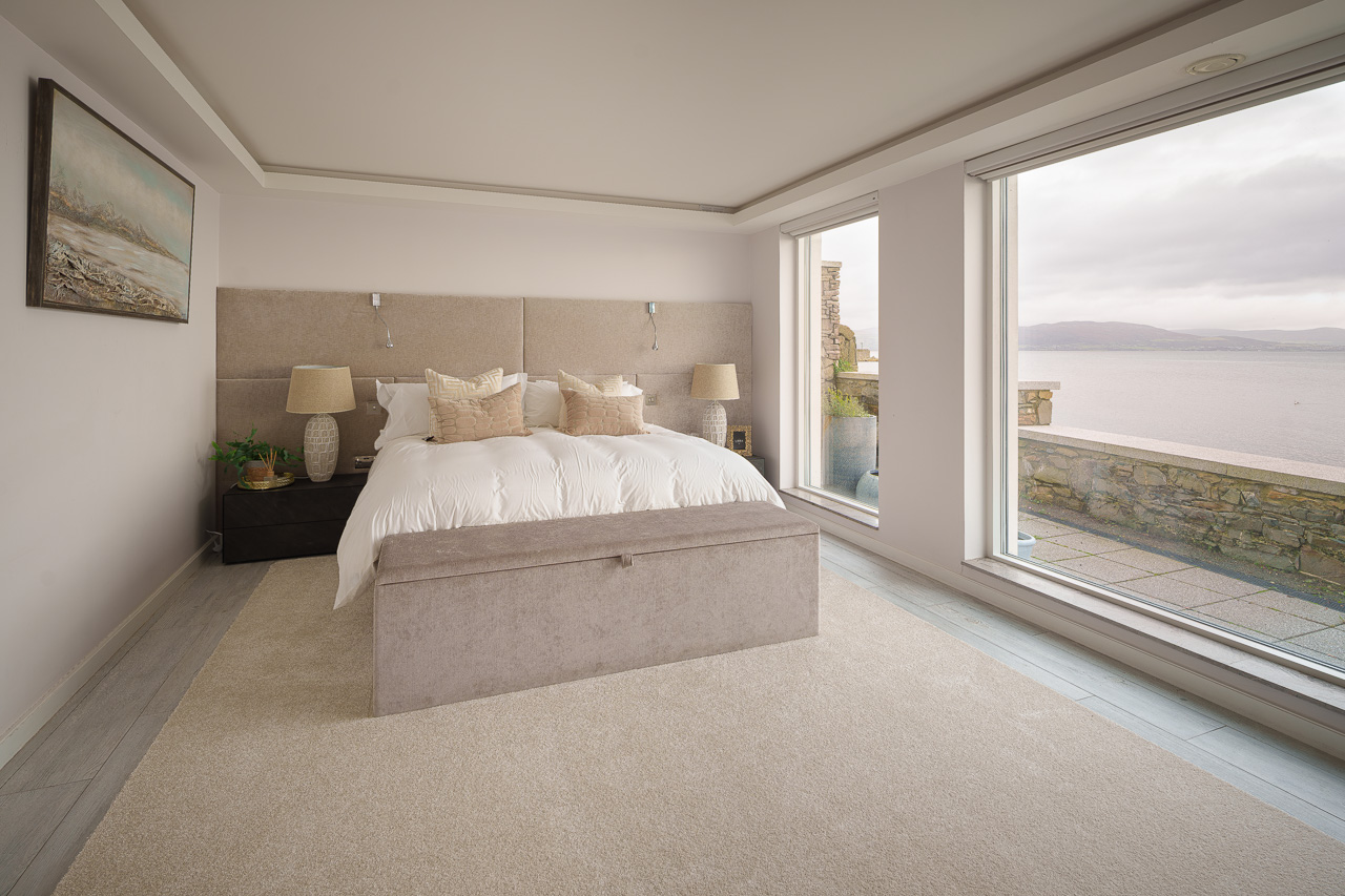 At entrance level, there are three large bedrooms, all of which are en suite and have acres of wardrobe space. You can fall asleep to the sound of the sea in the two to the rear.
