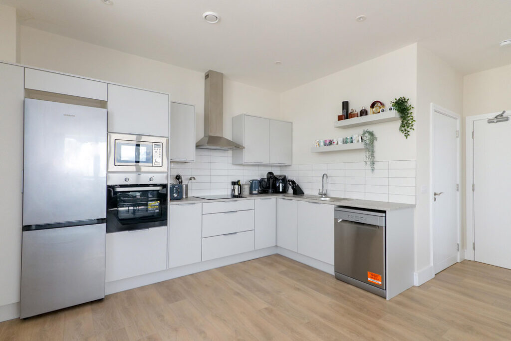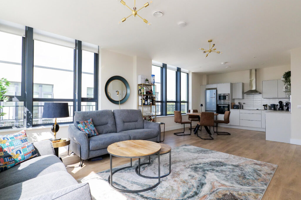 Built by Burkeway Homes in 2023, the A2 Ber-rated two-bedroom, two-bathroom corner penthouse has large windows that frame the vista of Galway city and Galway Bay.