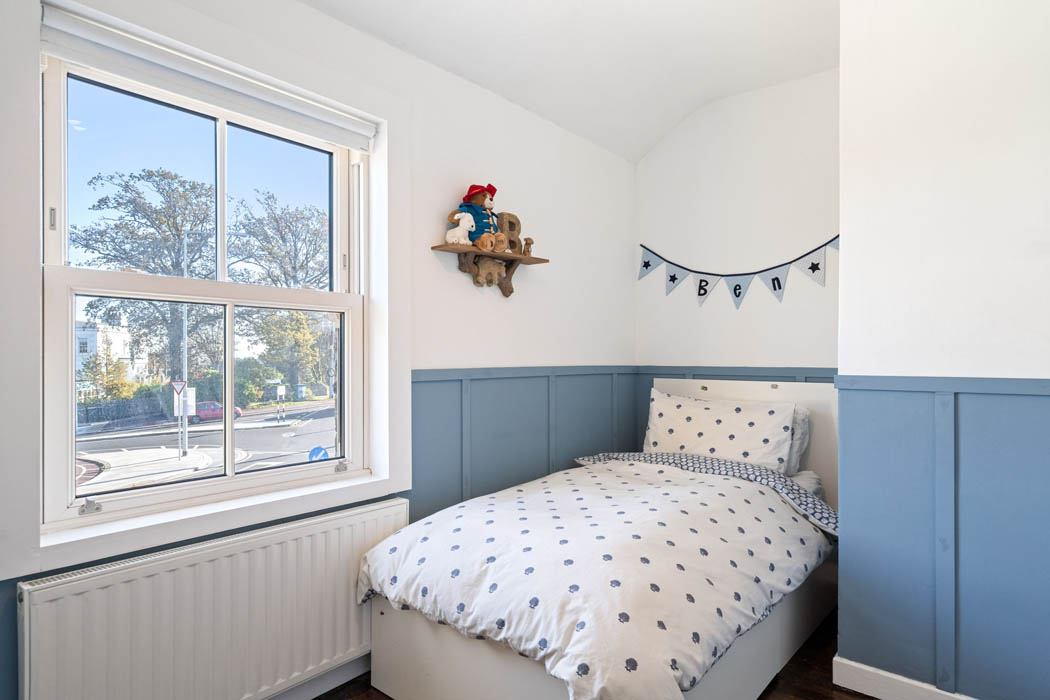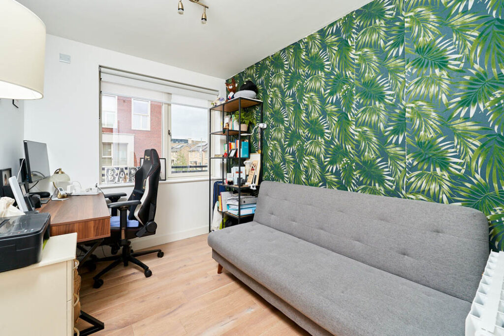 On the other side of the entrance hall, there is a sitting room that could double as a fourth bedroom.