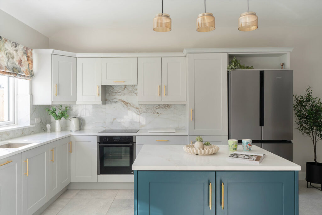 Alena used the space allocated to the fridge freezer to fit the pantry unit and extended the length of the bank of units to accommodate the larger fridge.