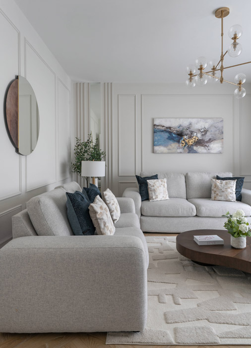 They wanted a contemporary look with some colour to soften their preferences for pale neutrals.