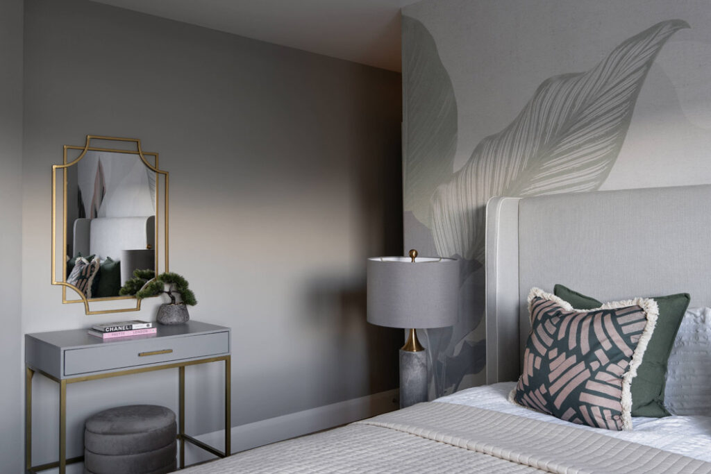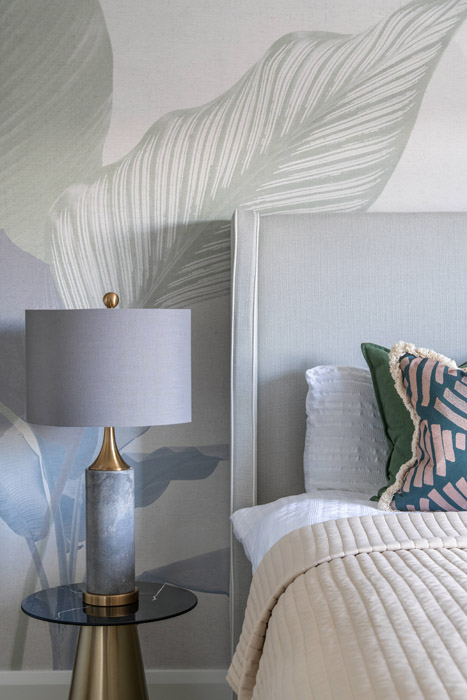 In the principal bedroom, there is a wingback Charlotte ottoman bed, with plenty of storage, from Diamond Furniture.