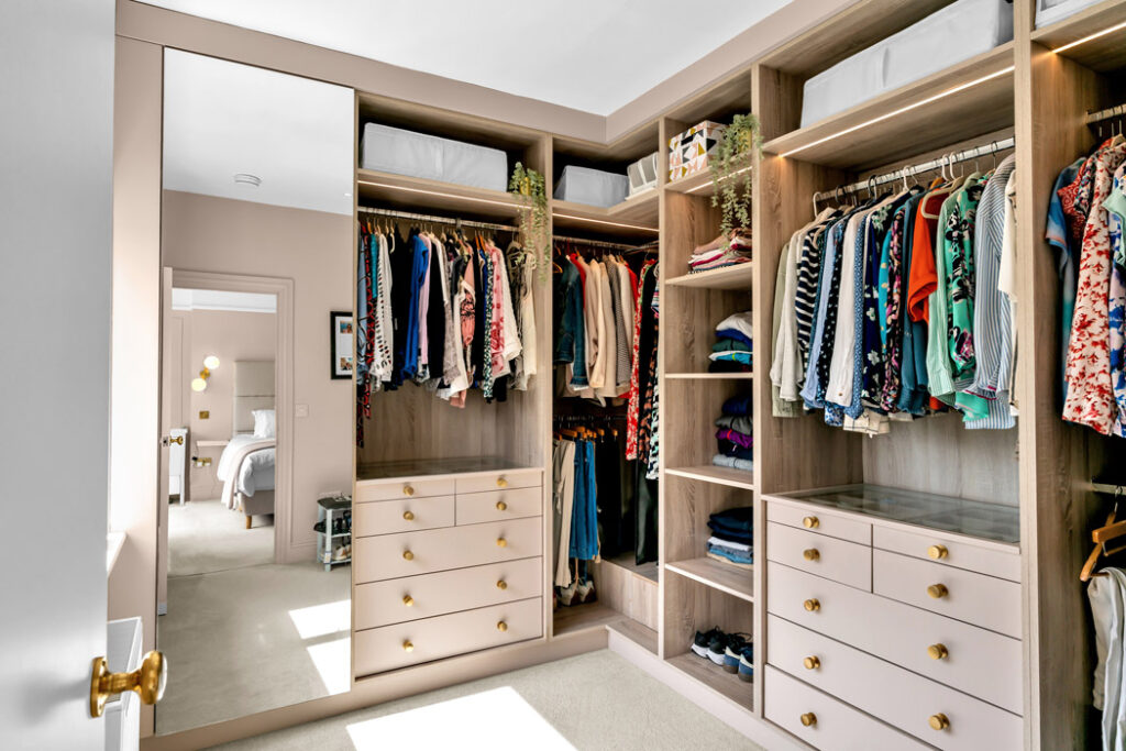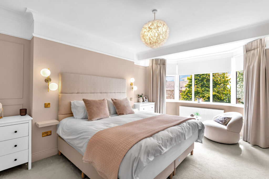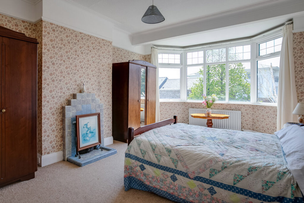 The principal bedroom is to the front and opens into the adjoining single bedroom, which they use as a walk-in wardrobe.