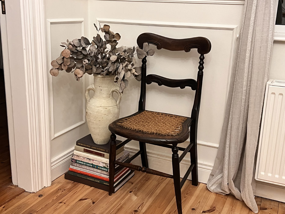 A café-style chair she found now stands in the hall.