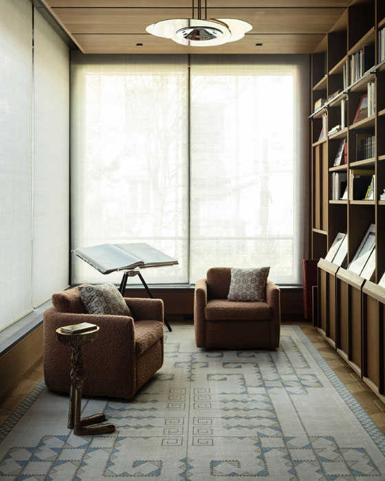 Vanderhurd's work for Leroy Street Studio on a Brooklyn townhouse includes this rug