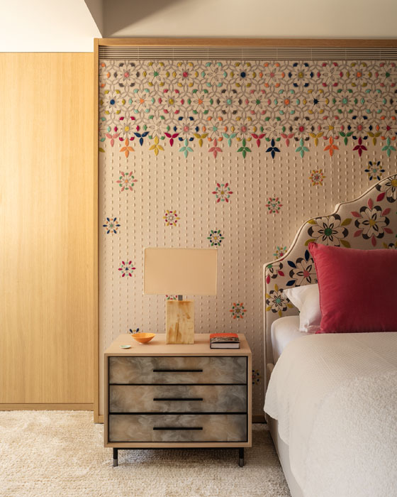 “We are designing hand-embroidered panels which can be installed on wardrobe doors or used for walling. This will help to soften the sound and create a more intimate atmosphere.