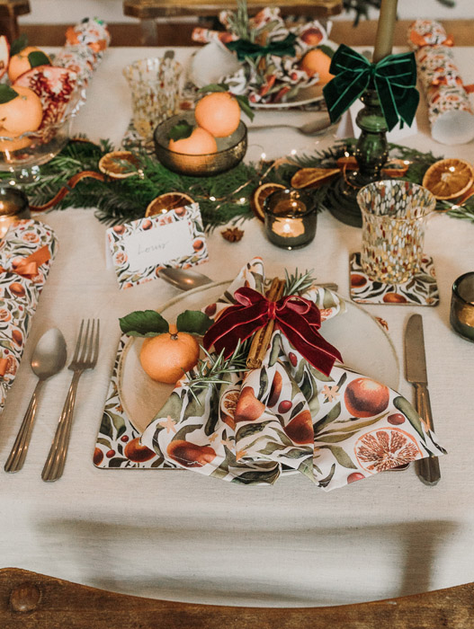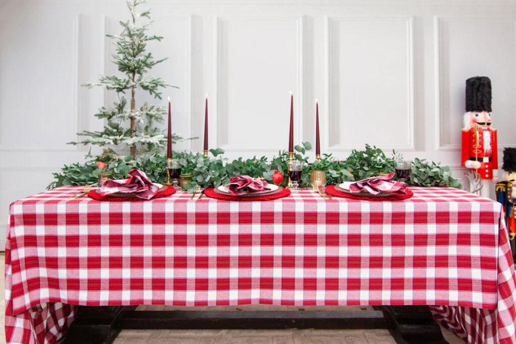 Tara O’Connor’s The Designed Table delivers festive greetings in one simple tablecloth.
