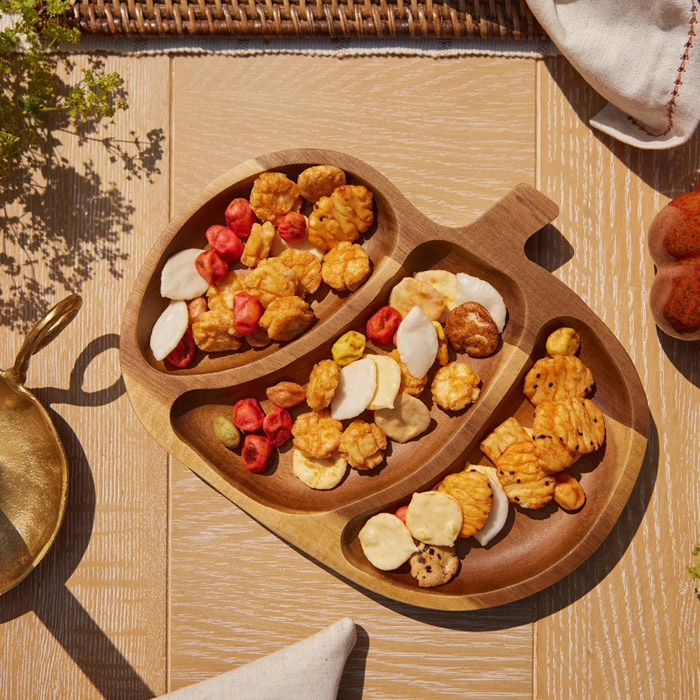 Made of acacia wood, it measures about 35 cm by 23cm and is sizeable enough to serve up monkey nuts and traditional treats.