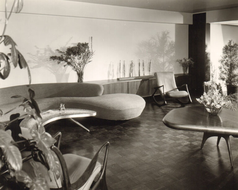 Upon his death in 2016, in an obituary The New York Times published, writer Jacob Bernstein described the curved piece as the designer’s “best-known” creation, going on to outline it as something that “might be found if the Jetsons decided to relocate from Orbit City to the Trousdale Estates in Beverly Hills.”