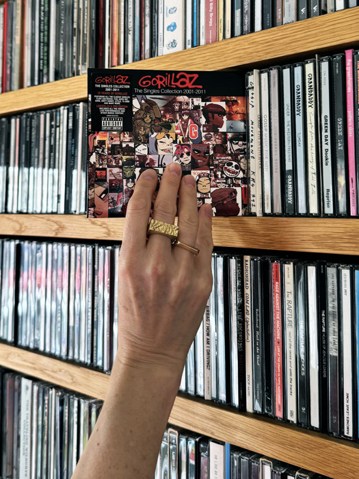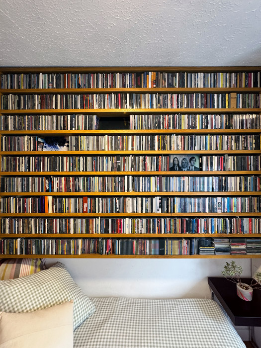 She admits to owning about 7,000 compact discs. “I wanted a wall of CDs that felt like art,” she explains.