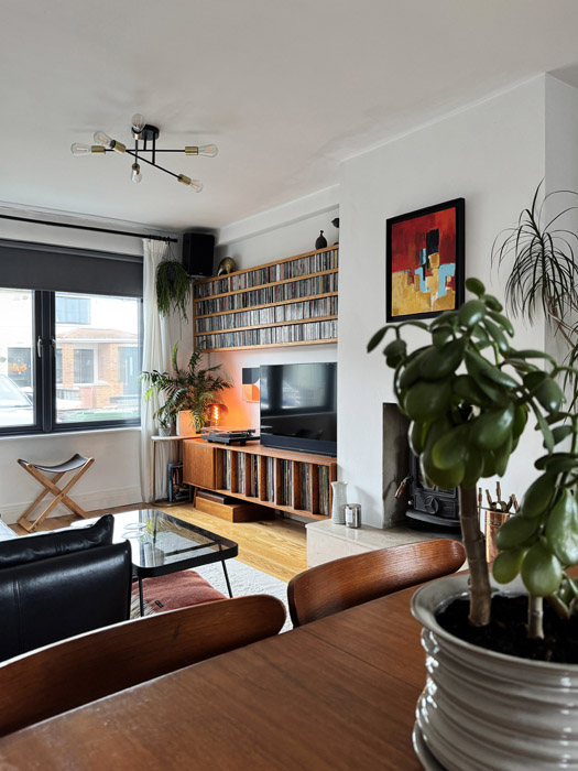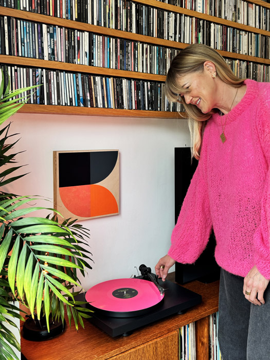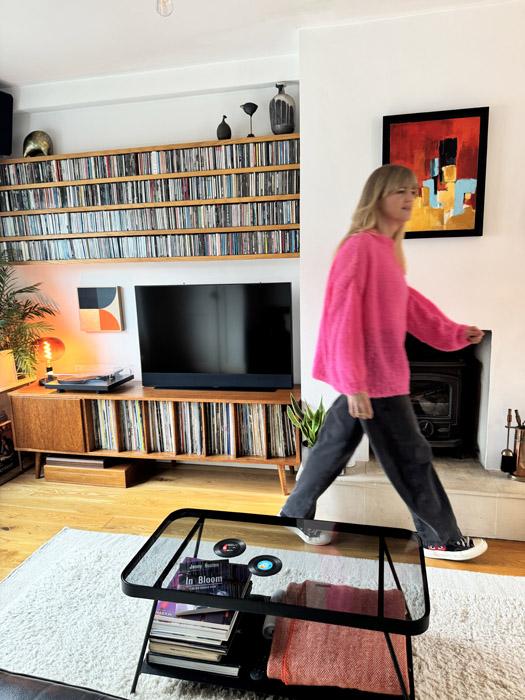 Rocking a jewel box-sized two-up, two-down terrace house, she has used a music format as decoration in her home that doubles as a music library and muse for her brand, Edge Only.
