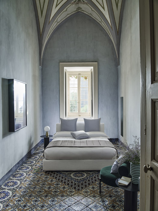 Create a sense of a private palazzo at home with its Doppio Ajour king-size duvet cover, €695, fitted sheet, €275, pillowcases, €165 per pair, and rectangular bedspread, €1,295.