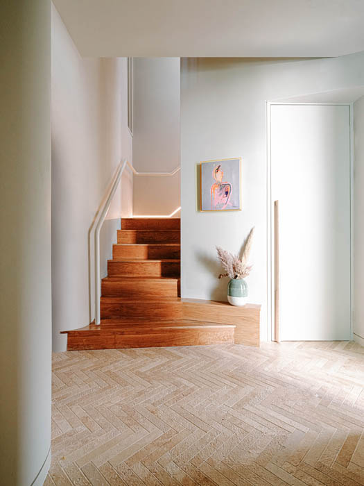 They also turned the staircase, reversing its position, so that it forms a divide between the living areas downstairs and the upstairs accommodation.
