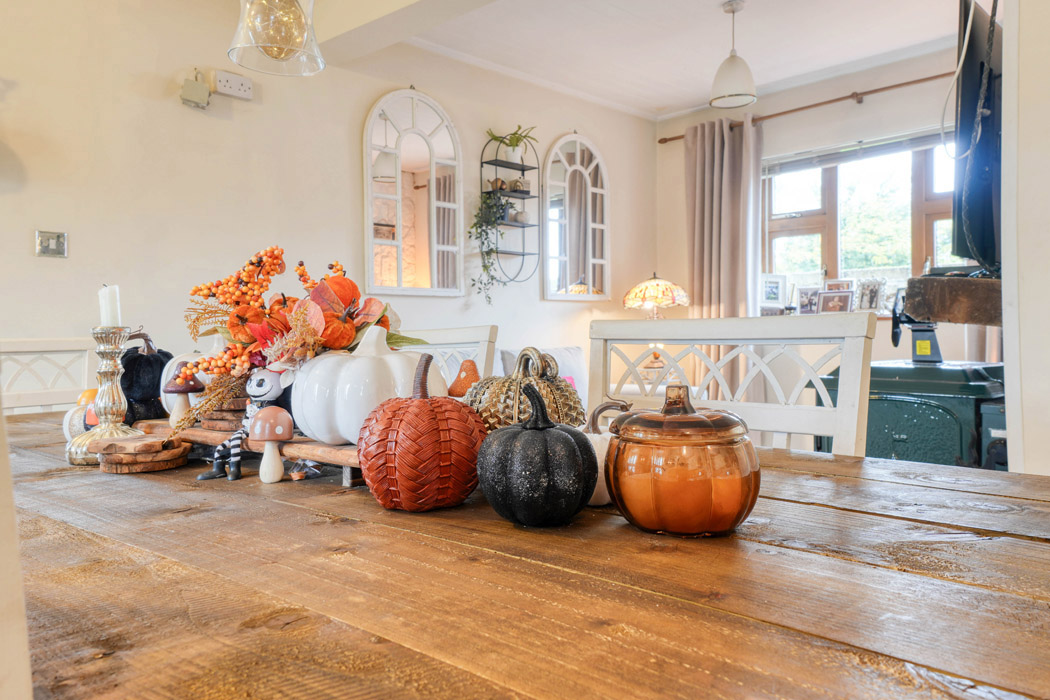 She’s still managed to seasonally adjust the décor to celebrate Samhain in a decorative way. Just watch out for the ghost features.