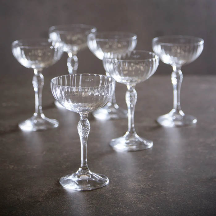For a slightly more gothic interpretation, try the Americana coupe, €44.95 for a set of six at Meadows & Byrne.