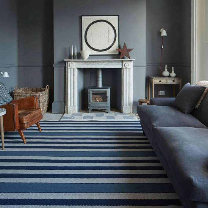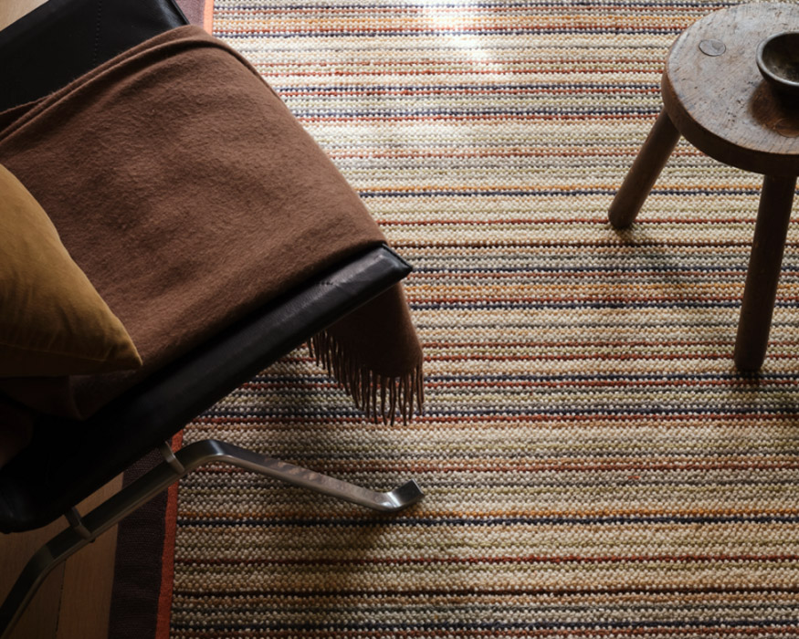Margo Selby’s range for Alternative Flooring includes Shuttle Silas, a graphic motif that she likes to use on stairs. “What is interesting is that when you look at a small swatch in a carpet shop, it can look too noisy, but when it is installed, the print spreads out.” Instead, it dissipates.